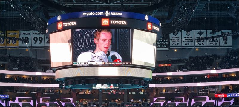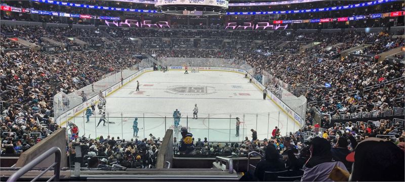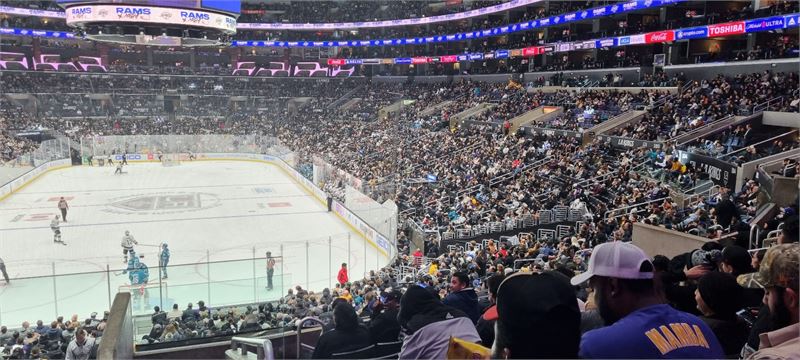 [아이스타임즈=정예원 기자] LA Kings vs San Jose Sharks 경기가 진행되고 있다. 경기장 내부가 관중들로 가득 찼다.